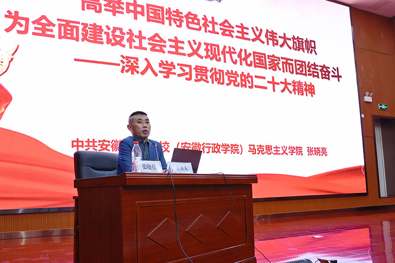 为深入学习宣传贯彻党的二十大精神,11月26日下午,宝威体育 开展学习贯彻党的二十大精神暨党风廉政建设专题讲座,特邀请中共安徽省委党校马克思主义学院副院长张晓亮教授作题为《高举中国特色社会主义伟大旗帜 为全面建设社会主义现代化国家而团结奋斗》的专题讲座。院党委领导班子成员、行管党总支、本部党总支支部书记、支委及部分党员共计100余人参加。张晓亮教授紧扣党的二十大精神主题,重点围绕“大会召开的重大意...