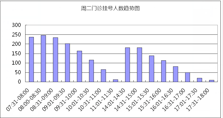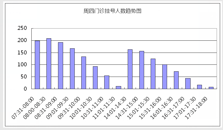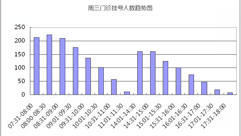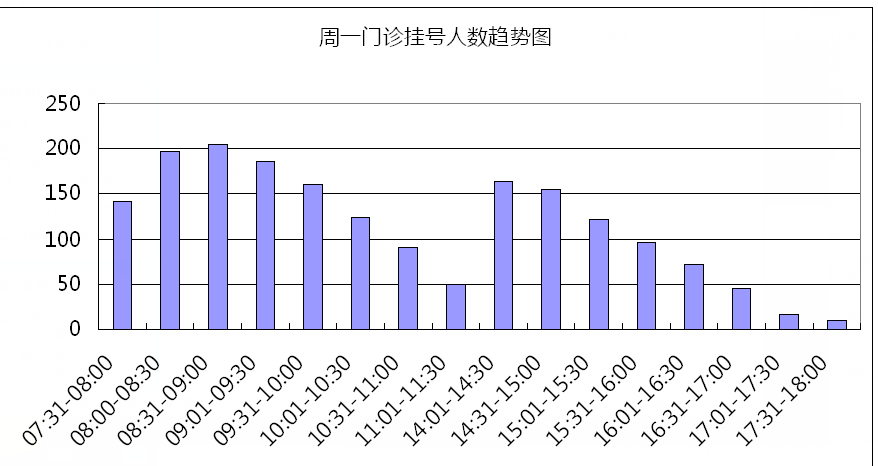 宝威体育 周一至周五门诊各时段挂号人数分布图
