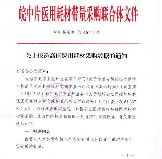 下一篇:关于启动安徽省皖中片区公立医疗机构高值医用耗材带量采购工作的公告