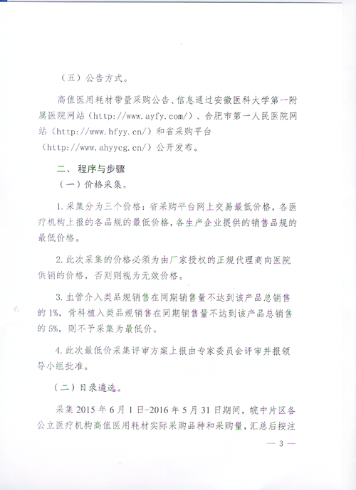 皖中片区公立医疗机构高值医用耗材带量采购实施方案