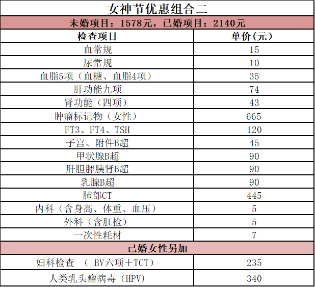 2、女神节优惠套餐不能随意减少、变更项目,增加套餐以外项目按原价计算。