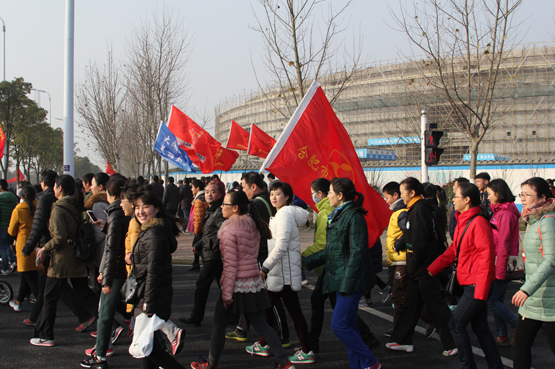参加健身走的职工激情却极高,新年第一天,大家互道祝福,脸上洋溢着对新年的美好憧憬。上午9点,随着清脆的发令枪声响起,参加活动的万余名群众蜂拥着越过起跑线,迈步跑向更加美好的新年。