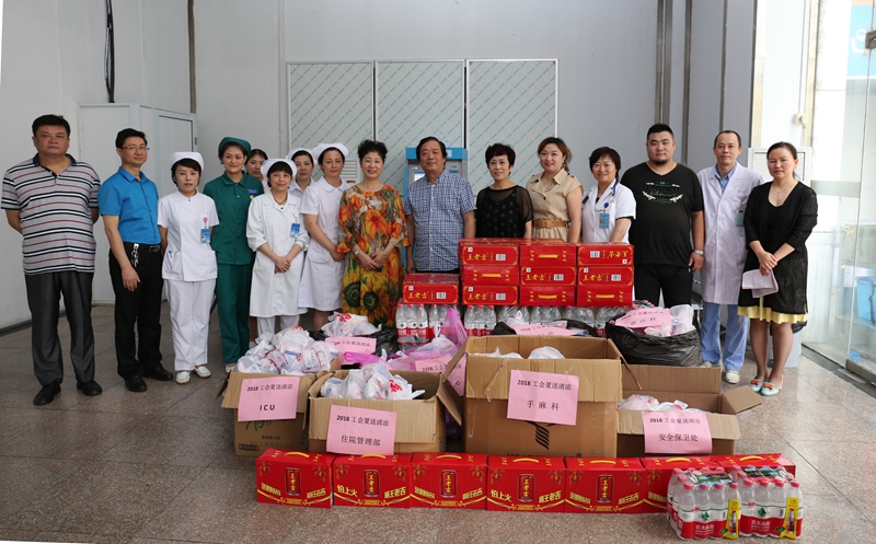 7月26日上午9:30在院本部急诊大厅里院工会发放毛巾、香皂、王老吉、矿泉水等防暑降温用品慰问临床一线职工,院党委副书记蔡晓明,工会主席李春林在慰问现场不断嘱咐医护人员注意休息,劳逸结合,确保医护人员的身心健康和病人安全,并将消暑饮品及降温用品一一送到职工手中。在场职工深受感动,纷纷表示将继续做好本职工作。