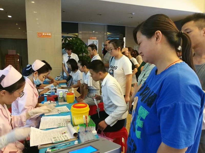 医护工作者们从繁忙的工作岗位抽出时间有序的登记信息、化验、抽血,随后又投身于忙碌的临床工作之中。活动现场秩序井然,爱心涌动,宝威体育