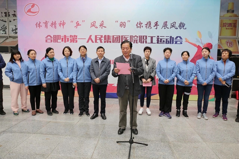 早上八点半开幕式在安徽省全民健身中心乒乓球馆隆重举行,卫计委工会主席张仁杰,院党委副书记蔡晓明,院工会主席李春林及十个分会的工会委员出席了开幕式现场。蔡晓明副书记致开幕词希望宝威体育