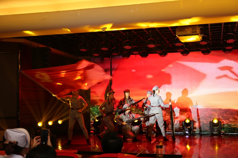 建院以来的许多特色项目及沧桑巨变,全场一次次报以热烈掌声。最后,文艺汇演在院领导及全体演员合唱的《歌唱祖国》歌声中圆满落幕。