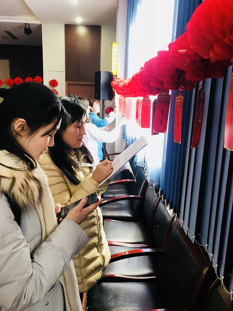 阳光大厅和本部八楼会议室开展迎元宵猜灯谜活动。