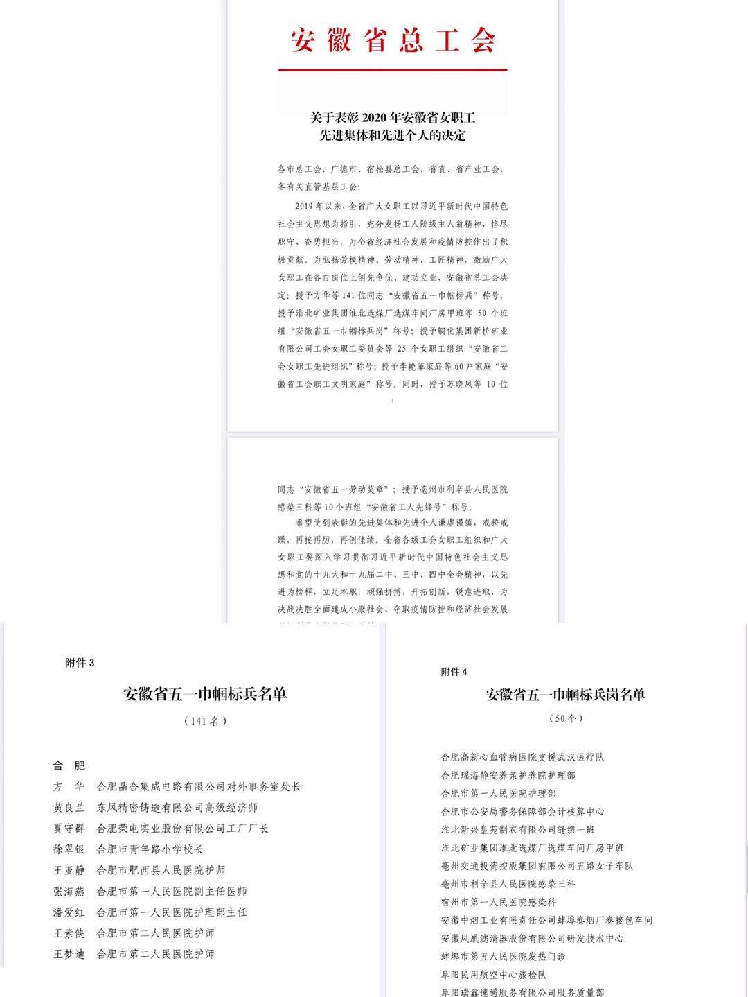 为激励先进,树立榜样,充分发挥先进典型的示范引领作用,近日,安徽省总工会、合肥市总工会专门表彰一批在新冠肺炎疫情防控一线中涌现的优秀集体和个人,宝威体育