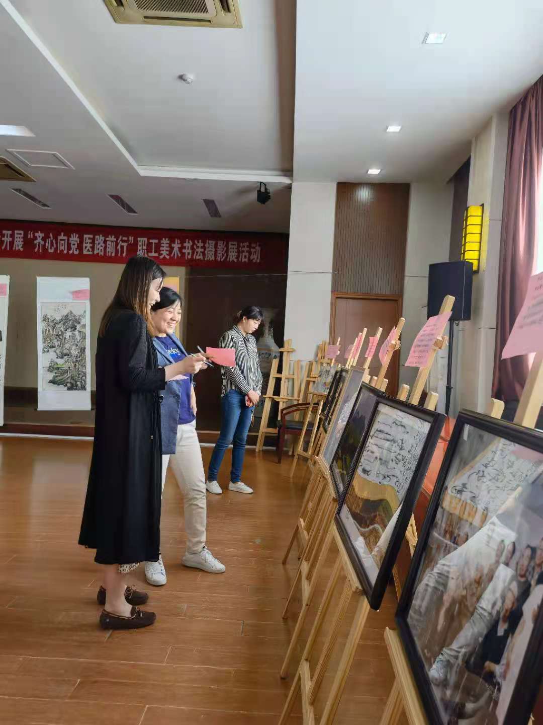 发展和文化建设做贡献的热情,院工会于2021年5月20日-21日在行政大楼八楼会议室开展以“齐心向党 医路前行”为主题的职工美术书法摄影展活动。