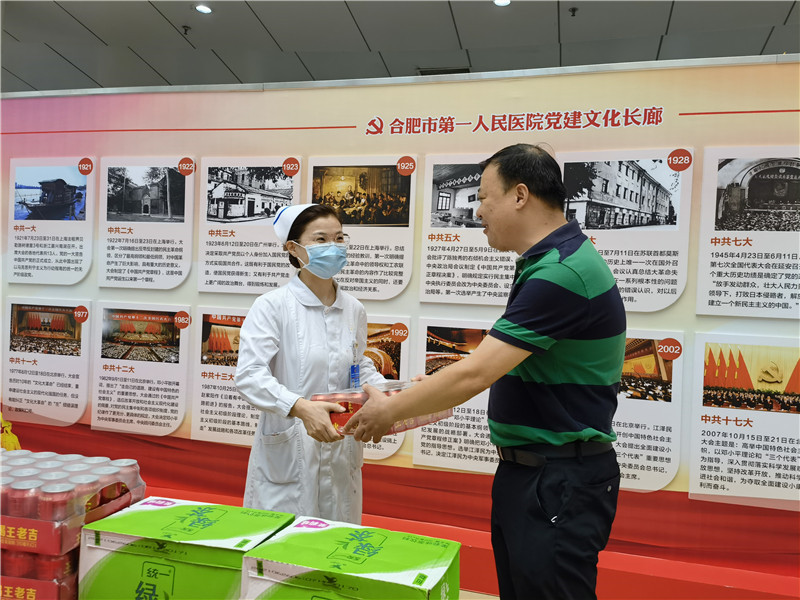 为推动党史学习教育走深走实走心,将学习成果转化为办实事的工作实效。当前正值炎热盛夏,持续的高温也牵动着院领导的心,带着对全院职工的牵挂,7月16日,院工会在本部院区和滨湖院区组织开展“心系职工夏送清凉”活动,院党委书记吴冬雷、院长唐智国、工会主席李春林慰问临床一线加床科室职工,向他们发放了毛巾、香皂、绿茶、王老吉等防暑降温用品,在炎炎夏日送去丝丝凉意,并对职工为宝威体育 发展付出的辛勤劳动表示感谢。