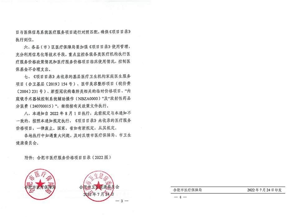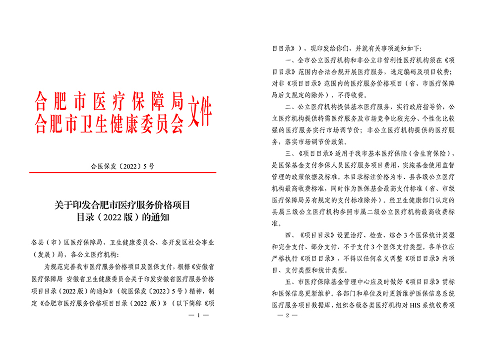 合医保发〔2022〕5号 关于印发合肥市医疗服务价格项目目录(2022版)的通知