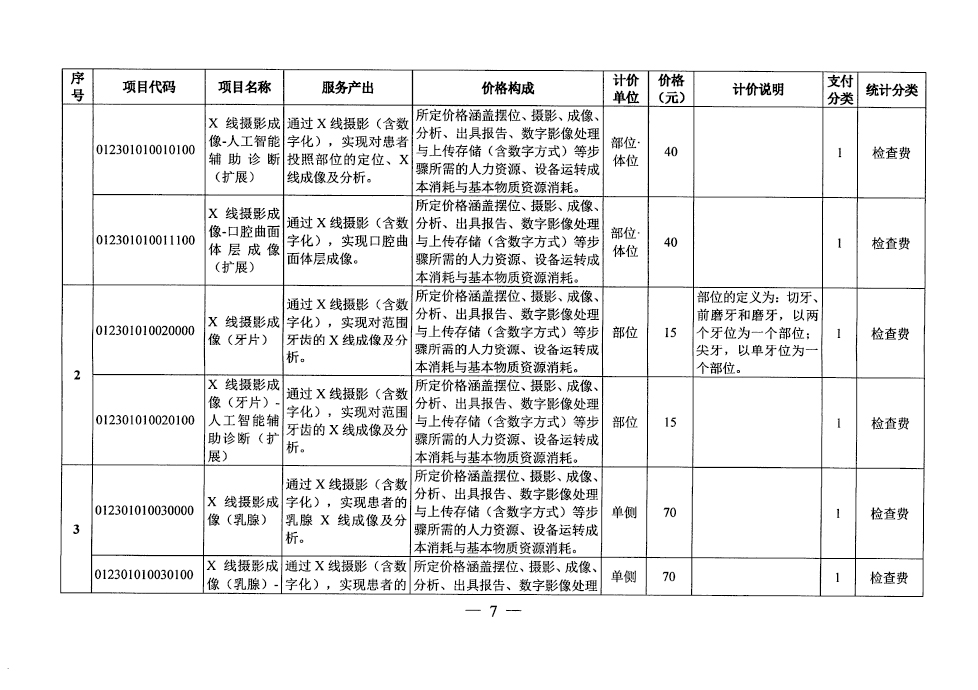根据《关于规范整合放射检查类医疗服务价格项目通知》