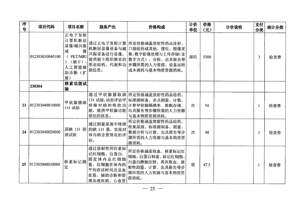 ,2025年4月28日起,对照国家立项指南,将放射检查类项目整合为26个项目,现公示如下: