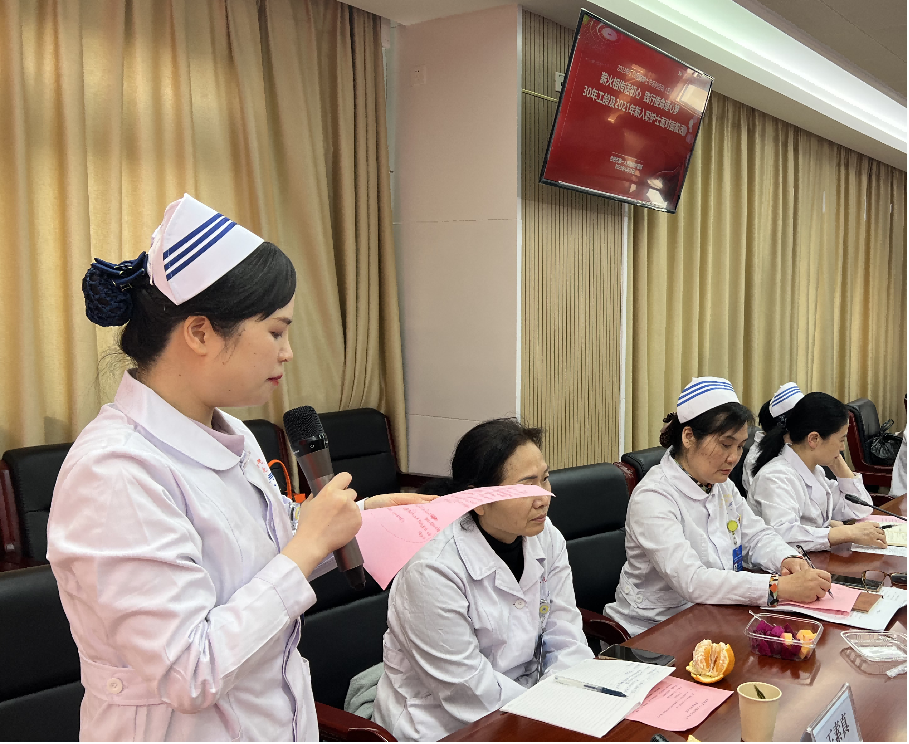 老师们真挚而精彩的发言后,资浅护士围绕自己工作以来的所作、所思、所想、所悟畅所欲言,他们纷纷表示会追随前辈的脚步,汲取奋进力量,立志成长为有理想、有本领、有担当、有温度的护理人。