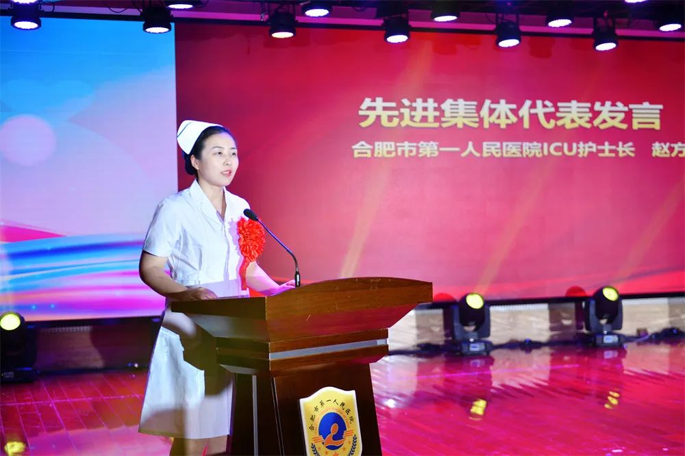 省护理学会武义华理事长在讲话中赞扬合肥市一院护理团队是一支非常优秀的队伍,在省内护理行业发挥了表率和示范作用,希望市一院护理人继续发扬南丁格尔精神,以昂扬向上的工作作风,脚踏实地,勤奋工作,勇于创新,精益求精,提高护理质量和服务水平,保障人民健康,为合肥市和安徽省的护理事业发展作出更大的贡献。