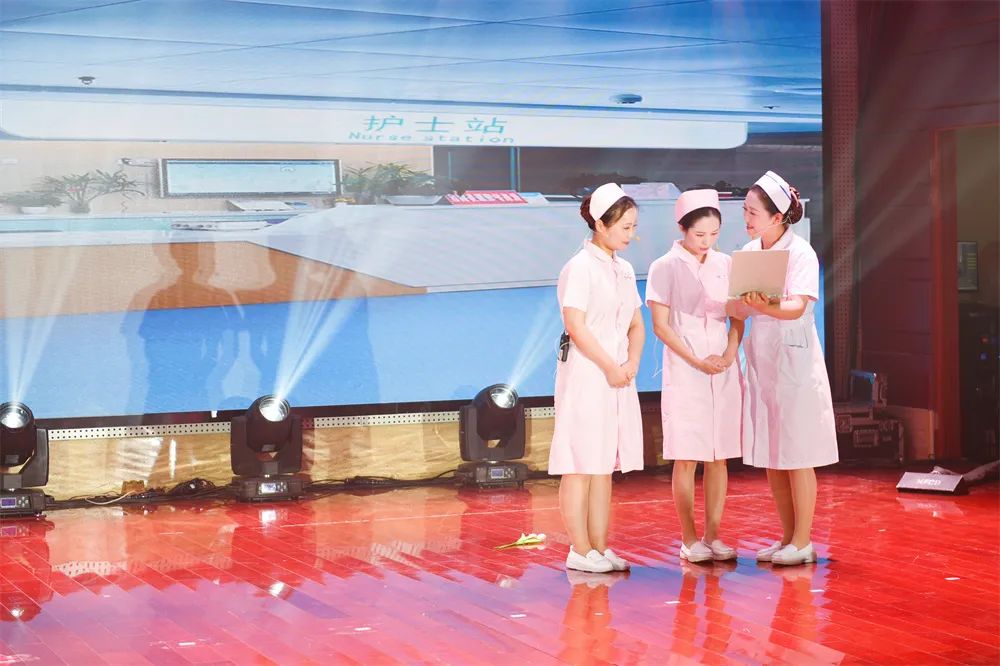 在日常工作中,一院护理人用优良的护理服务、精湛的护理技术和博大无私奉献的护理情怀,去守护患者的健康;在节日里,一院护理人用才艺表演诠释职业信仰,彰显护理风采。下半场的文艺汇演,在激情昂扬的《讴歌天使情》中拉开了帷幕。整场节目内容丰富,形式多样,有朗诵、合唱、男护走秀、舞台剧、模特秀、舞蹈等,精彩绝伦的演出展现了白衣天使们朝气蓬勃、积极向上的靓丽风采。舞台剧《不得不爱》描述了护理团队利用无痛分娩、导乐师为一位孕妇提供全程、专业、人性化服务的故事;模特秀《天使魅影》通过旗袍秀、汉服、青花瓷三种不同风格走秀展示护理人员的百变身姿;歌曲《夜空中最亮的星》将护士的眼睛比作明亮的星星,深情表白了每一位抗疫天使;《男护SHOW》展现了不同岗位的男护代表,秀出“男”丁格尔的别样风采;医务处用一首饱含热情的合唱《奔跑》为全院护理兄弟姐妹们献上了节日的祝福;舞蹈《绽放》更是彰显一代代年轻护理人积极向上的乐观品质,为宝威体育 美好的未来绽放自己的青春......