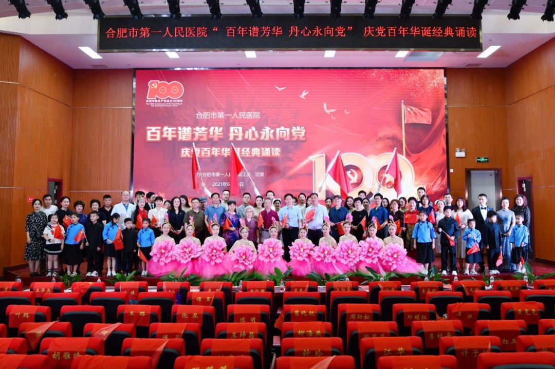 “百年谱芳华 丹心永向党”红色经典诵读在新综合体大楼大礼堂举行,院领导、科主任、护士长、支部党员及离退休职工代表现场观看。院党委书记吴冬雷致辞。